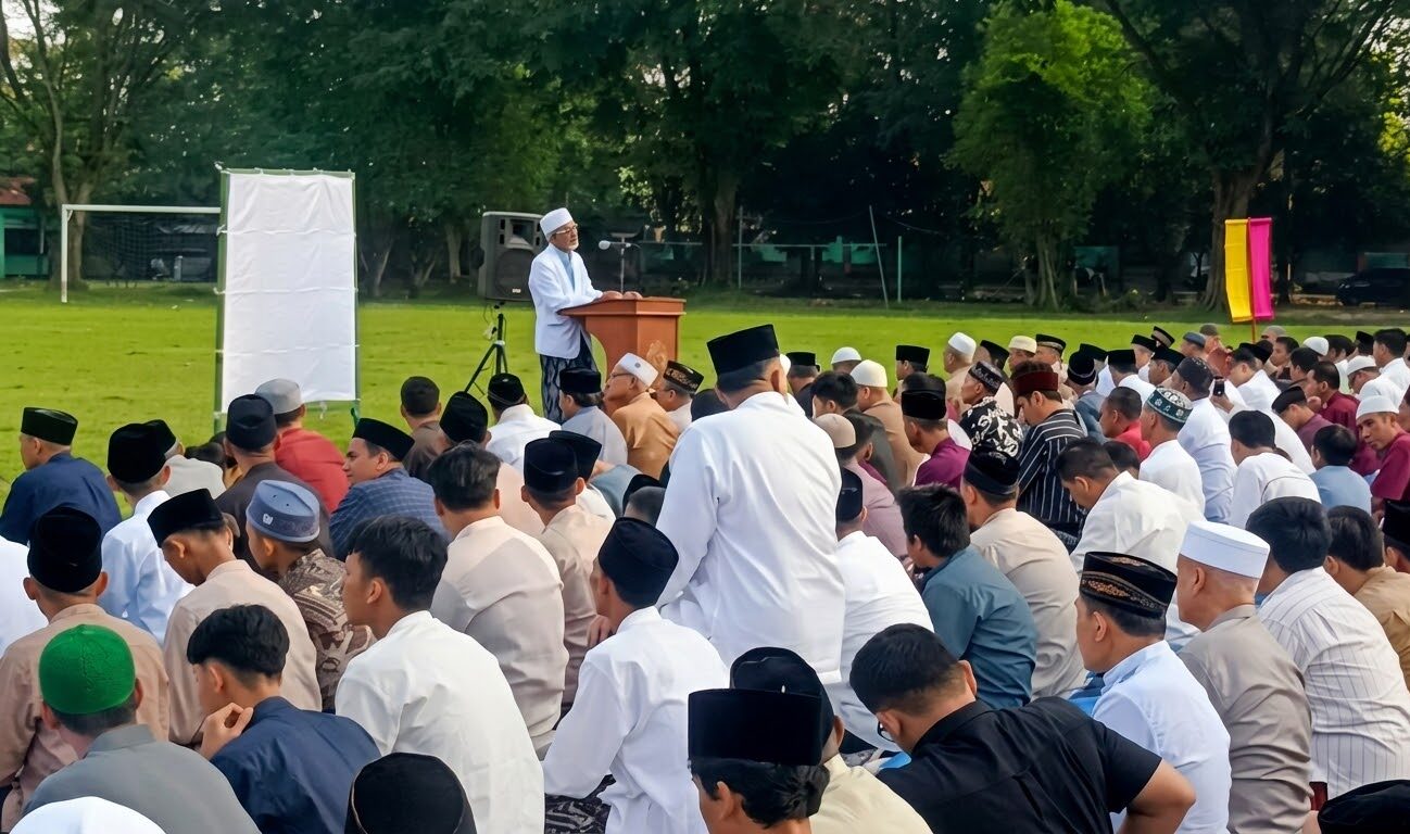 Arus jamaah mulai membanjiri lapangan terbuka dan halaman masjid sejak pukul 06.00 WIB. Semangat kemenangan terasa kental menyelimuti Bumi Alas Roban pagi ini. Panitia di tiap lokasi tampak sigap mengatur shaf dan area parkir. Hal ini dilakukan demi menjamin kelancaran ibadah tahunan warga.